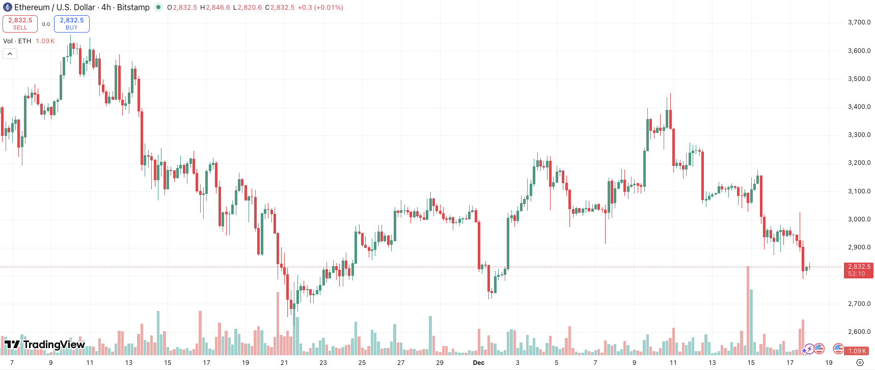 Tại thời điểm viết bài, ETH giao dịch quanh mốc 2.800 USD – vùng giá tương đối “yếu”. Dù diễn biến ngắn hạn vẫn chịu ảnh hưởng từ tâm lý chung của thị trường, cấu trúc cung – cầu của ETH đang thay đổi đáng kể.