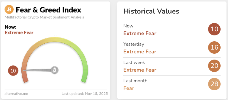 Chỉ số sợ hãi & tham lam của BTC đã rơi về 10 – vùng Cực kỳ sợ hãi