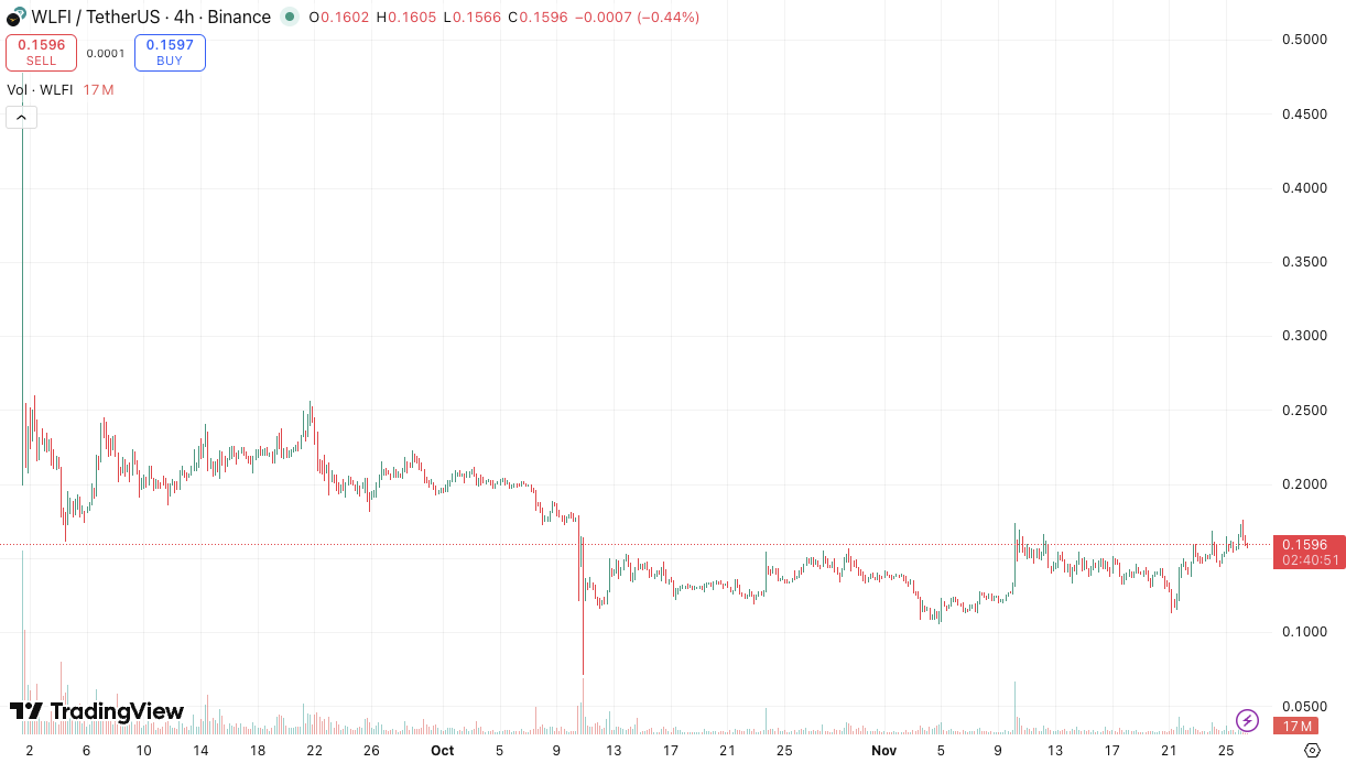 WLFI đã giảm hơn 50% từ khi ra mắt | Nguồn: Tradingview